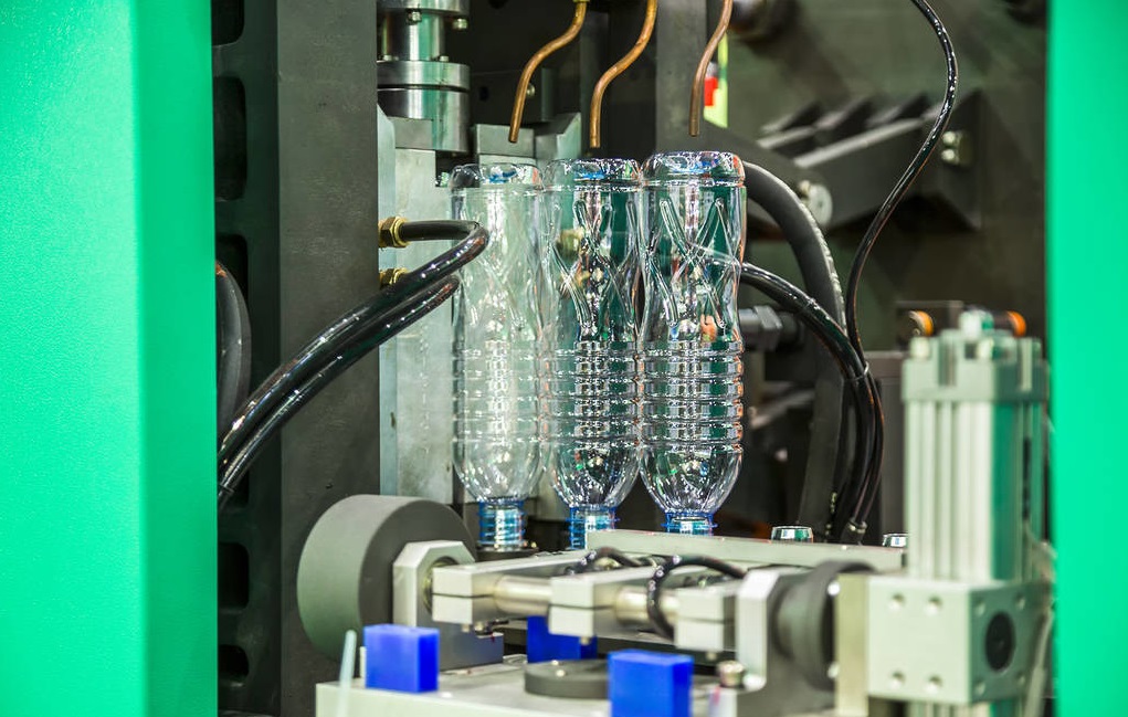 在這個階段,預熱殼體(embryo)被放置在準備良好的吹塑模中,在高壓下充氣,而殼體(embryo)被吹入所需的瓶中。